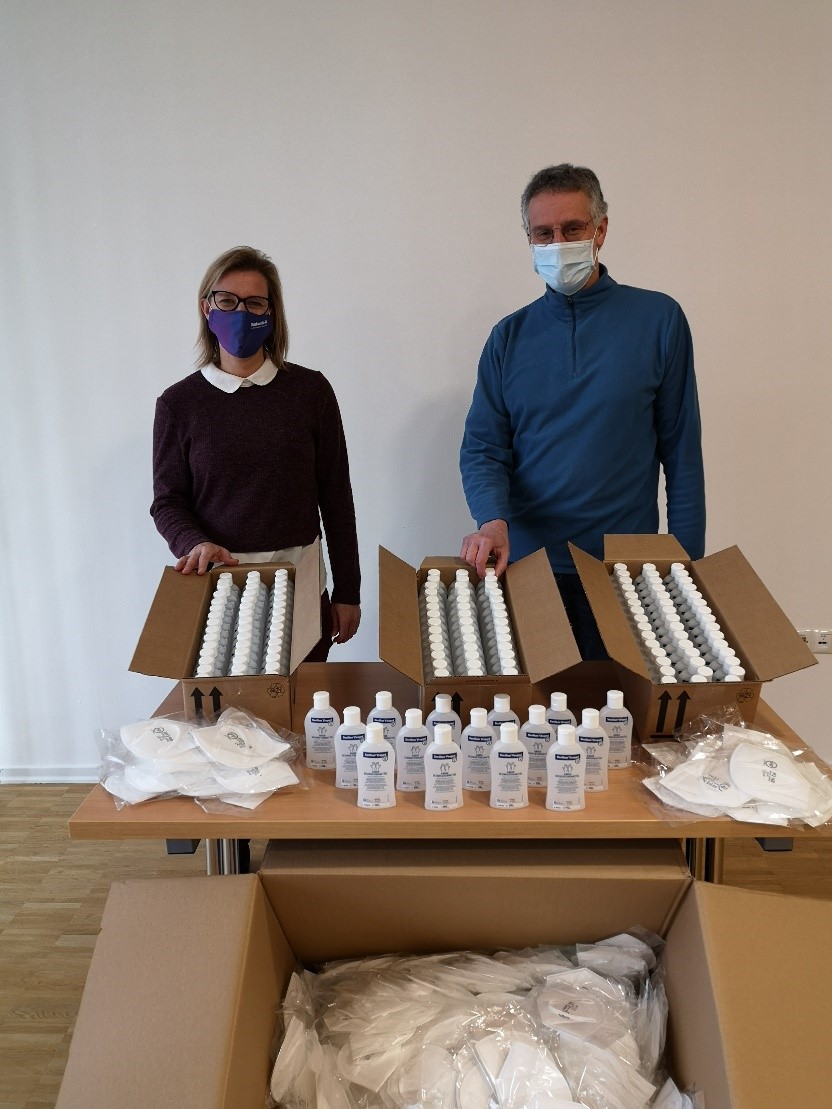 Geldern. Über die Bundesarbeitsgemeinschaft für Wohnungslosenhilfe e. V. erhielt die Fachberatungsstelle für Wohnungslosenhilfe eine Spende über 1.000 Euro vom SAP Solidarity Fund e.V. Obwohl Wohnungslose als besonders gefährdete Gruppe in Bezug auf die Ansteckung mit dem Coronavirus gelten, ist eine Bereitstellung von Schutzutensilien - etwa für Beratungssituationen - nicht vorgesehen. Als Schutzutensilien verwenden Wohnungslose häufig Tücher, Schals oder schon häufig benutze Masken. Handdesinfektionsmittel besitzen die wenigsten von ihnen. Durch diese Spende konnten Handdesinfektionsmittel im Taschenformat und FFP2-Masken angeschafft werden, die nun an Besucherinnen und Besucher der Fachberatungsstelle für Wohnungslose in Geldern ausgegeben werden. Die Firma S.M.I., Metall- und Handelswaren als Anbieter der FFP2-Masken unterstützte das Vorhaben zusätzlich, indem sie die Anzahl der bestellten Masken auf 500 auffüllte und dadurch mehr als verdoppelte. Rainer Blix, Mitarbeiter der Fachberatungsstelle und die Diakonie im Kirchenkreis Kleve sagen herzlichen Dank!