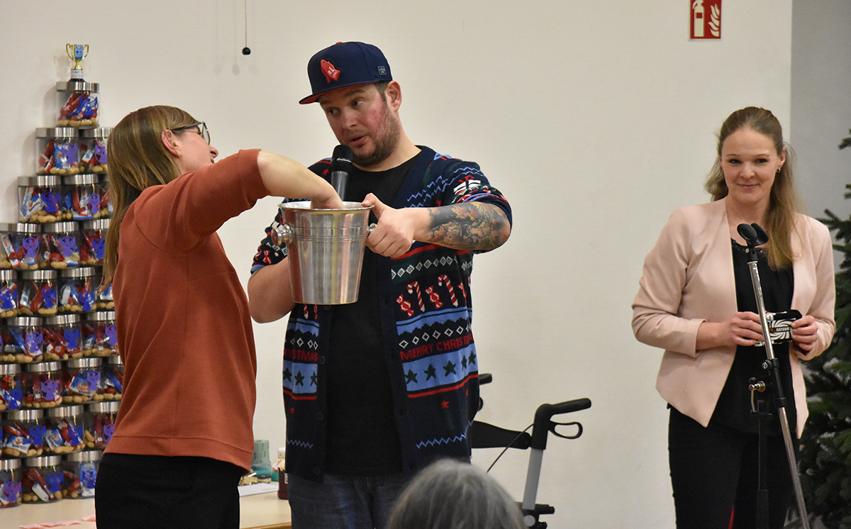 Kleve. Danke sagen, dafür bilden Weihnachtsfeiern eine gute Gelegenheit. So auch die Weihnachtsfeier des Ambulant Betreuten Wohnens der Nordregion in Kleve. Nach andächtigen Worten von Pfarrer Benjamin Meister und der Begrüßung durch die BeWo-Fachbereichsleitungen Alexa Leenders und Dirk Boermann nahm Betreuer Marcel Nauta das Mikrofon im Kolpinghaus Kleve in Beschlag.