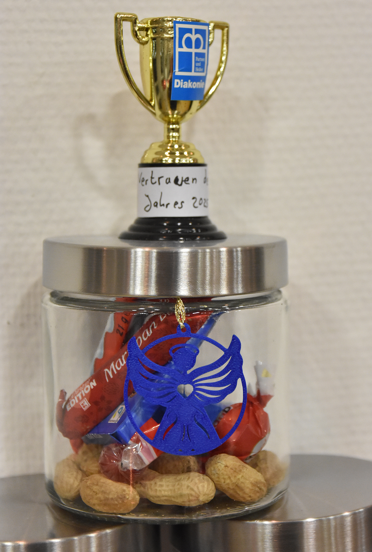 Nauta hatte kleine Pokale gebastelt und zu jeder Kollegin, zu jedem Kollegen eine kurze Laudatio vorbereitet. Die Pokale wurden BeWo-Mitarbeitenden überreicht für Fähigkeiten und Charaktereigenschaften, mit denen sie die Arbeit im Team und mit den BeWo-Nutzer:innen bereichern. Darunter Kreativität, Zuhören, Kochen, Basteln, Humor und gute Laune, gerne essen und reden, planen, organisieren, leiten - bereits bei den ersten Umschreibungen einer Person fielen den Anwesenden im Kolpinghaus Kleve konkrete Namen ein. „Es war schon eine aufwendige Aktion“, gestand Nauta, „aber es hat sehr viel Spaß gemacht“. Das zeigte auch der lange Applaus im Saal. Auch alle BeWo-Nutzer:innen bekamen stellvertretend einen Pokal für ihr Vertrauen, dass sie der Diakonie und den Mitarbeitenden entgegenbringen.